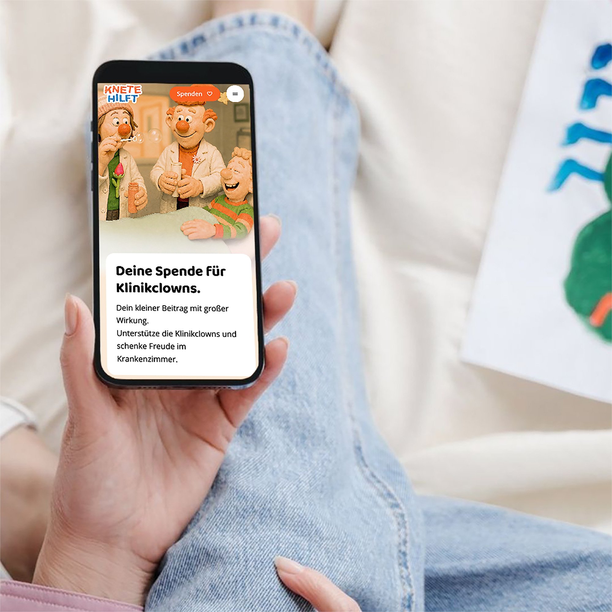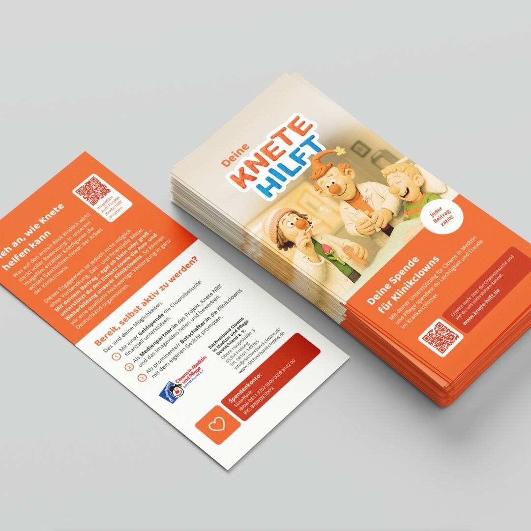 Analoger Verstärker ist der entsprechende Kampagnenflyer, der über die Vereine des Dachverbandes sowie über sein starkes Netzwerk bundesweit gestreut wird. Im Oktober 2025 ging die Spendenkampagne mit dem Knete-Clip an den Start und läuft primär in Kinos, auf Social Media und via TV-Wartezimmer. Mit Knete hilft zeigen wir als Designagentur Haltung, erzeugen positiven Impact und tragen dazu bei, dass Klinikclownerie weiterhin möglich bleibt. Inspiriert? Dann spende hier und unterstütze den Dachverband gezielt mit deiner Knete.